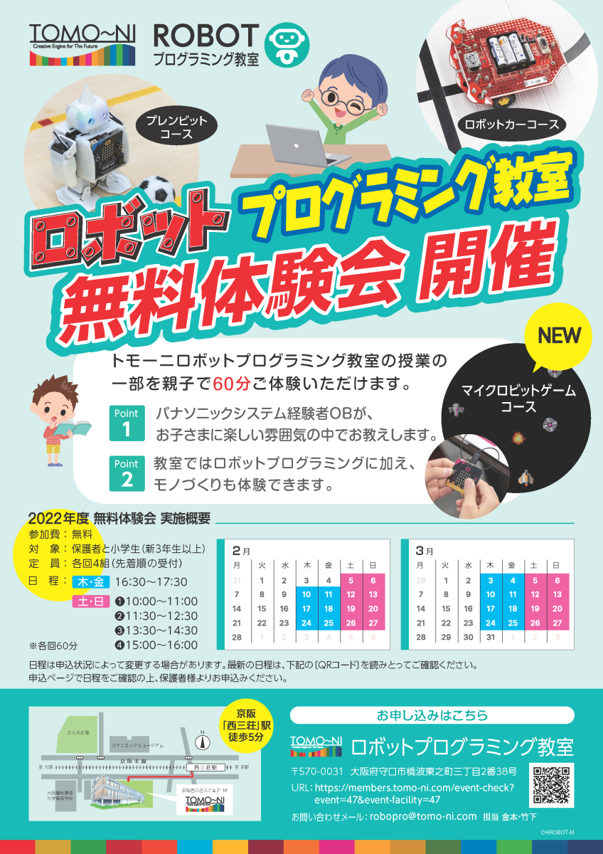 TOMO~NIロボットプログラミング教室では2月5日~3月27日までの間、