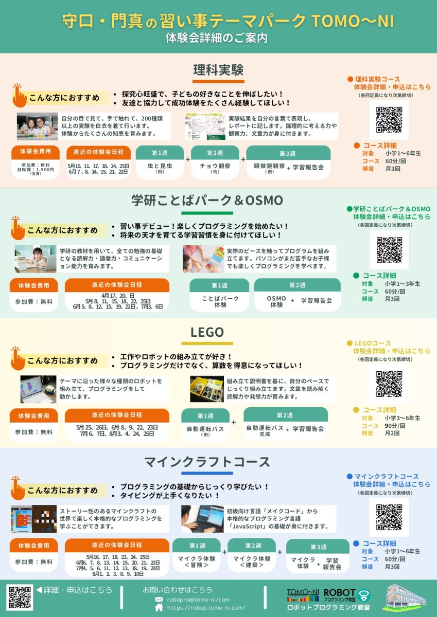 授業の一部を2~3回に渡って親子で体験頂けます。